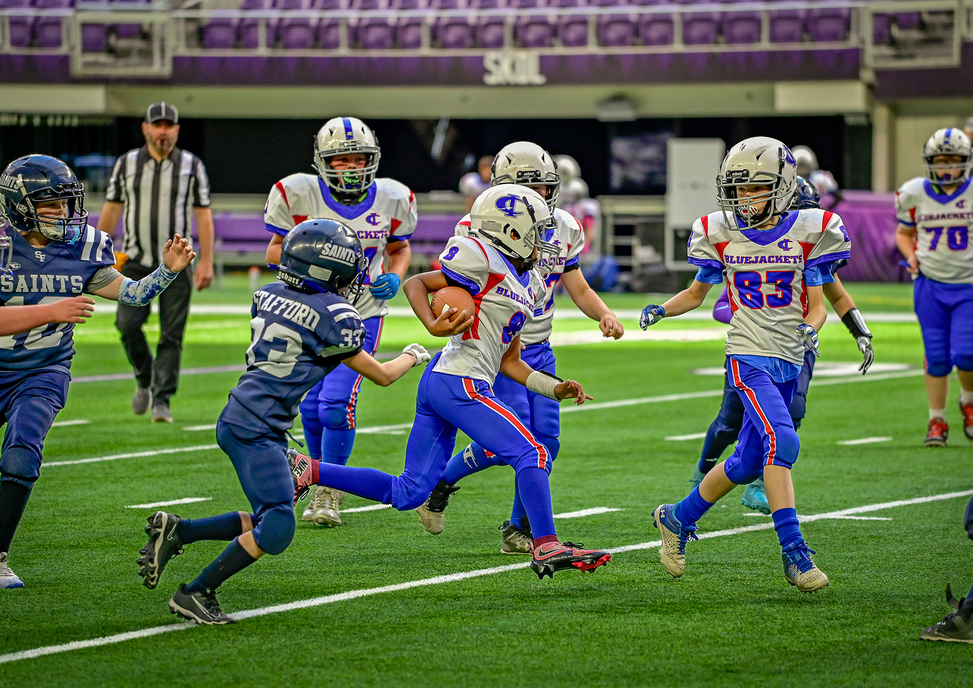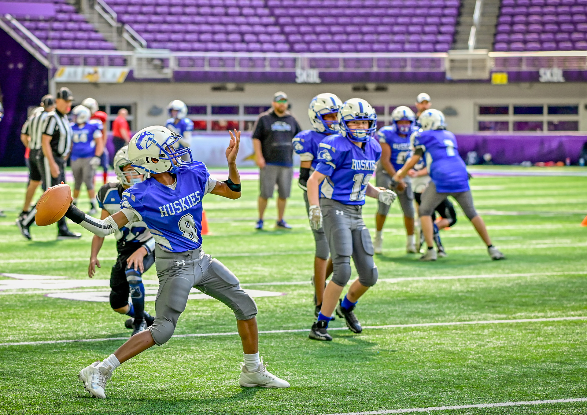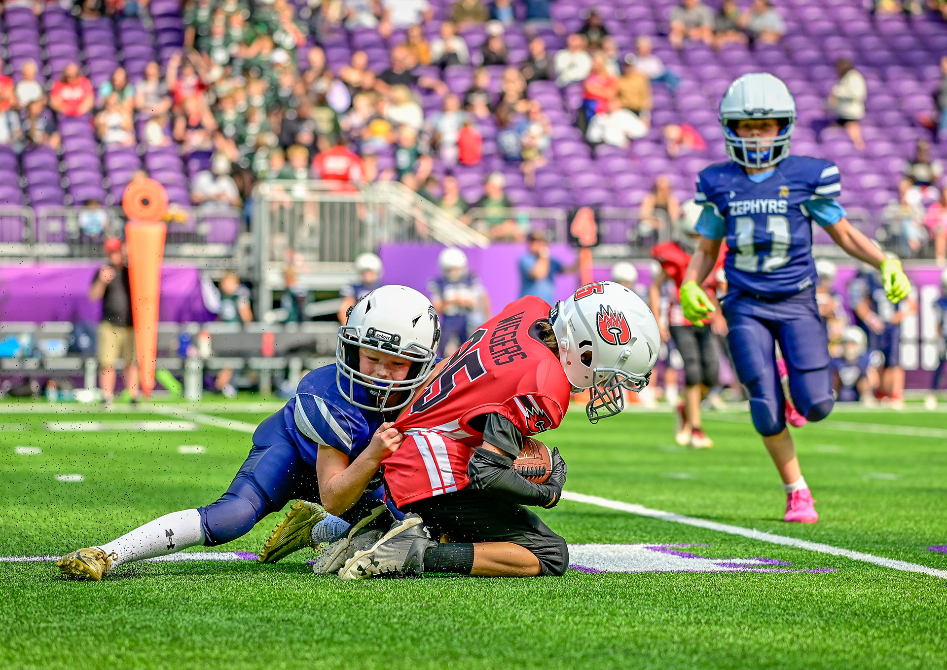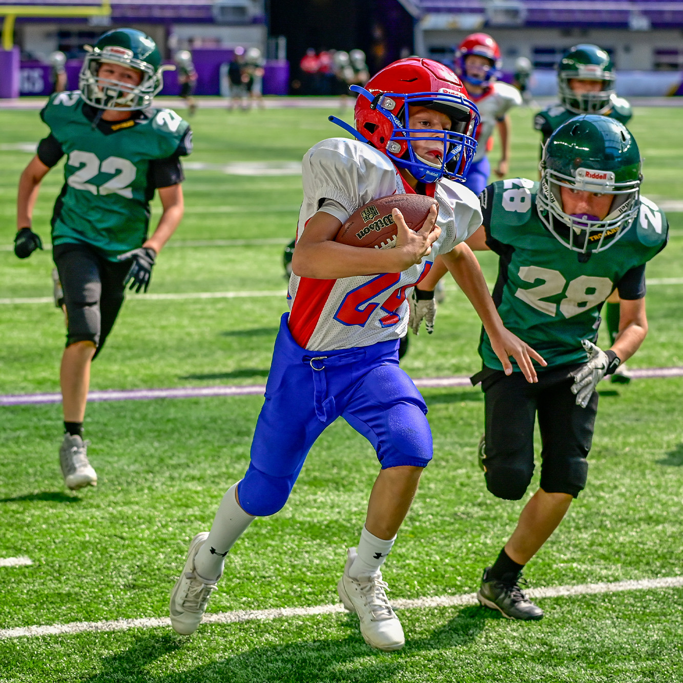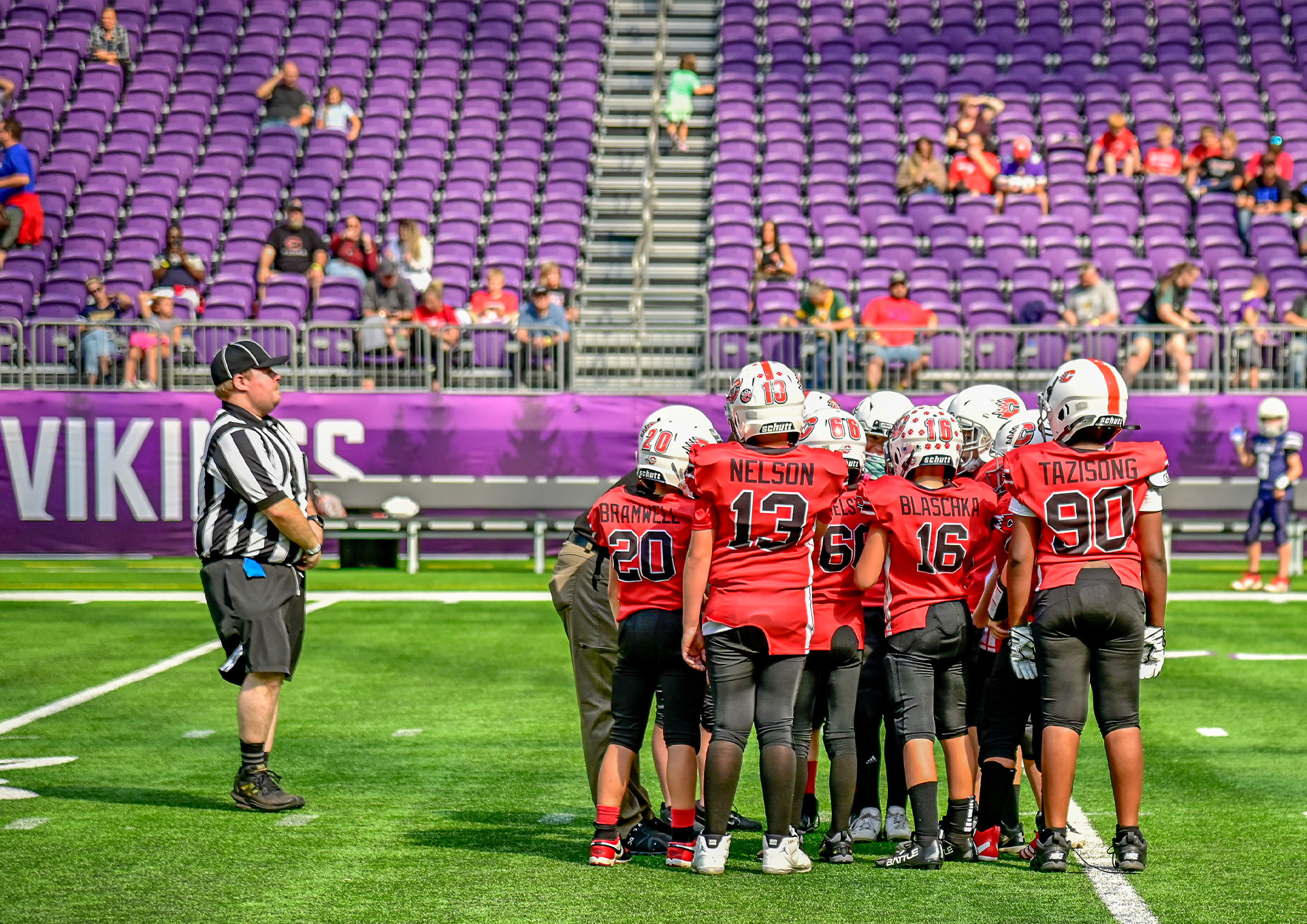 I worked as a sports photographer for Playbook, covering inter-school American football events between elementary and middle/high schools at U.S. Bank Stadium, home of the Minnesota Vikings.